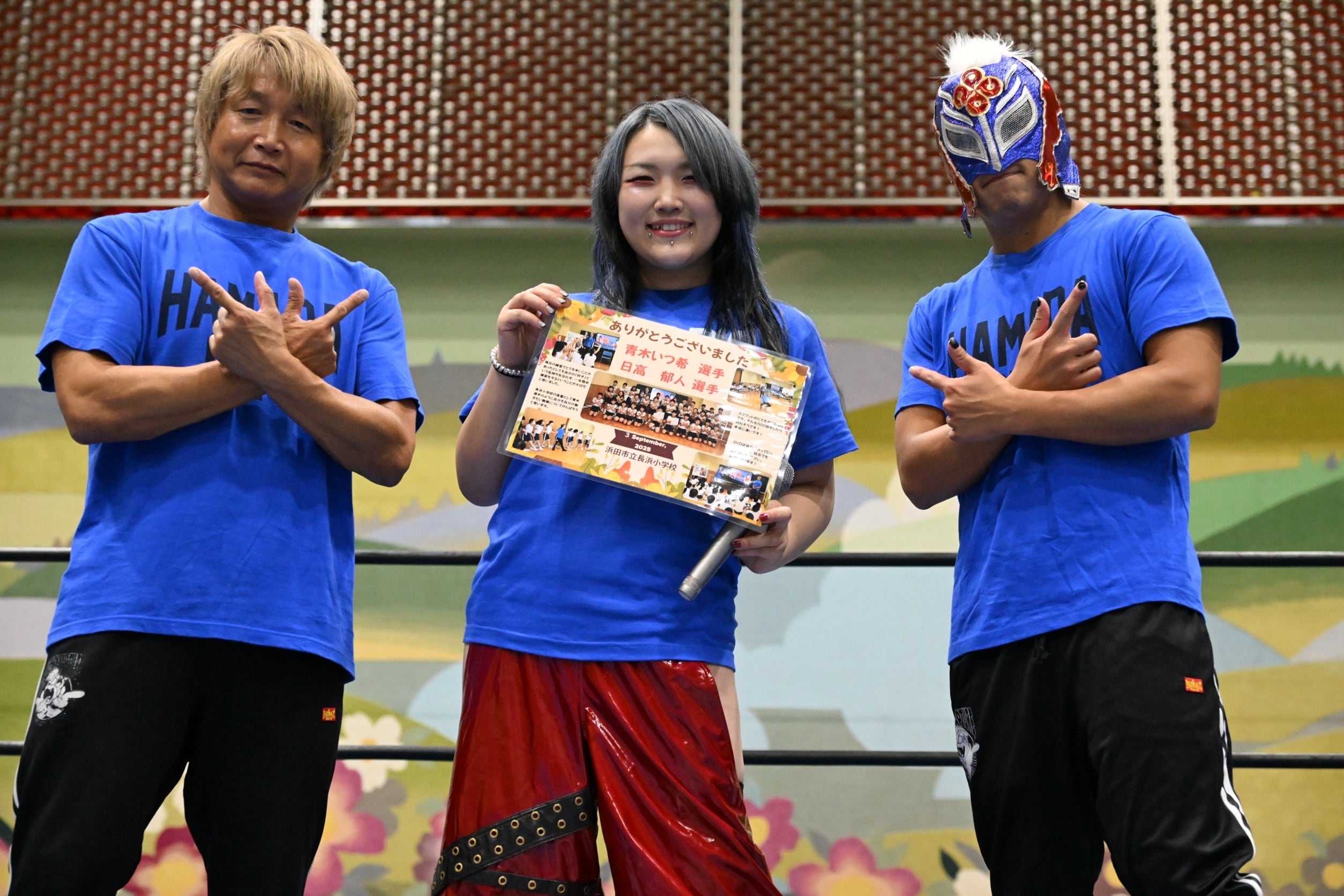 バックには浜田市の観光名所と特産品、しまねSuper大使吉田くんの「浜田の吉田」バージョンの書き下ろしデザインが描かれています。