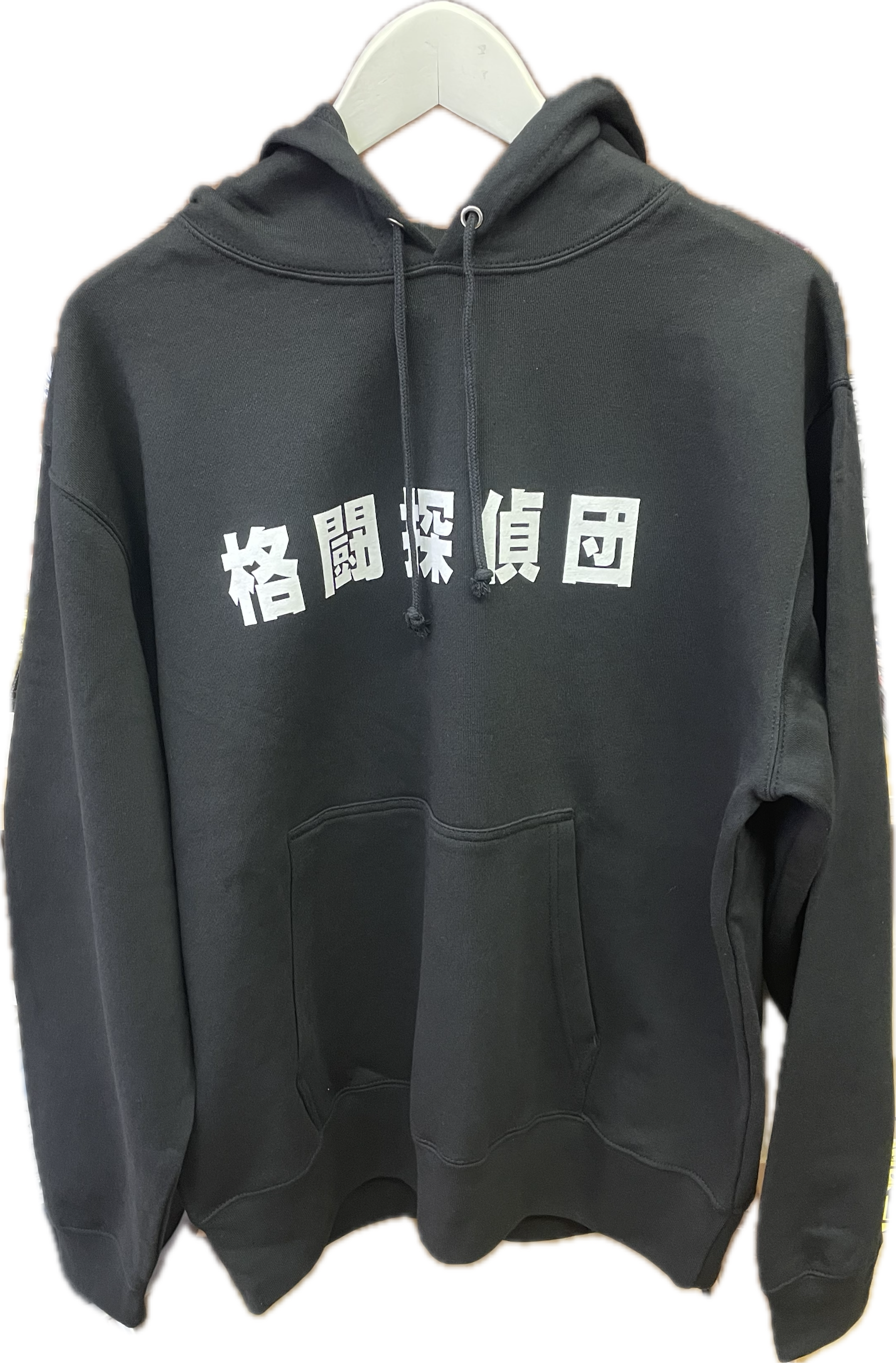フロント格闘探偵団文字ロゴ、バックフードに格闘探偵団ロゴがプリントされています。